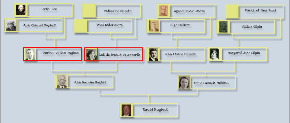 Letitia French Waterworth was born on the 14 February 1893 to David Waterworth and Catherine Waterworth nee Smeeth. Letitia was born at 1 Valentine Street Belfast which was situated in the shadow of the world renowned Gallagher Tobacco Factory. On July 9 1912 Letitia Married Charles William Hughes at Holy Trinity Parish Church, Charles was 21 and living at 17 Jaffa St, Belfast and Letitia 18 living at 41 Shannon St Belfast. Present and witnesses were Alfred Stone and Lilly Hughes. Letitia passed away on the 27 March 1983 At 19 Cliftonville Road Belfast. The informant was her son John N Hughes. Letitia’s mother was a Smeeth and the family story can be accesed from the folder below.